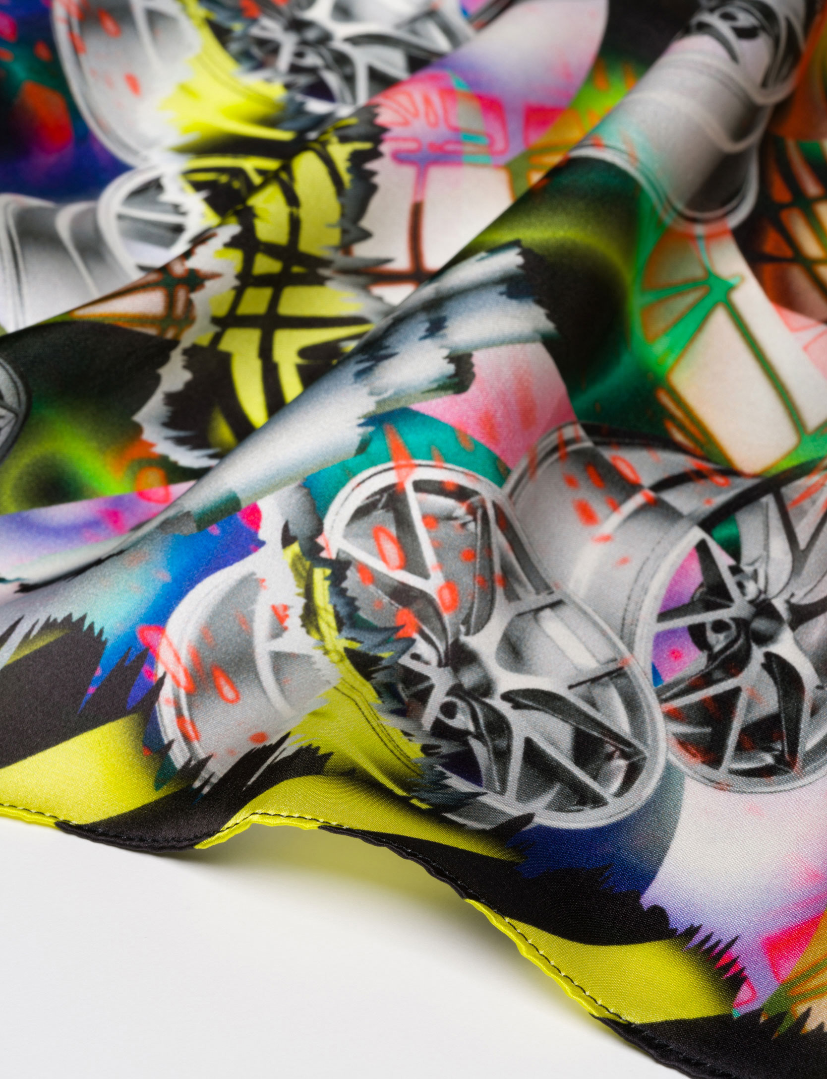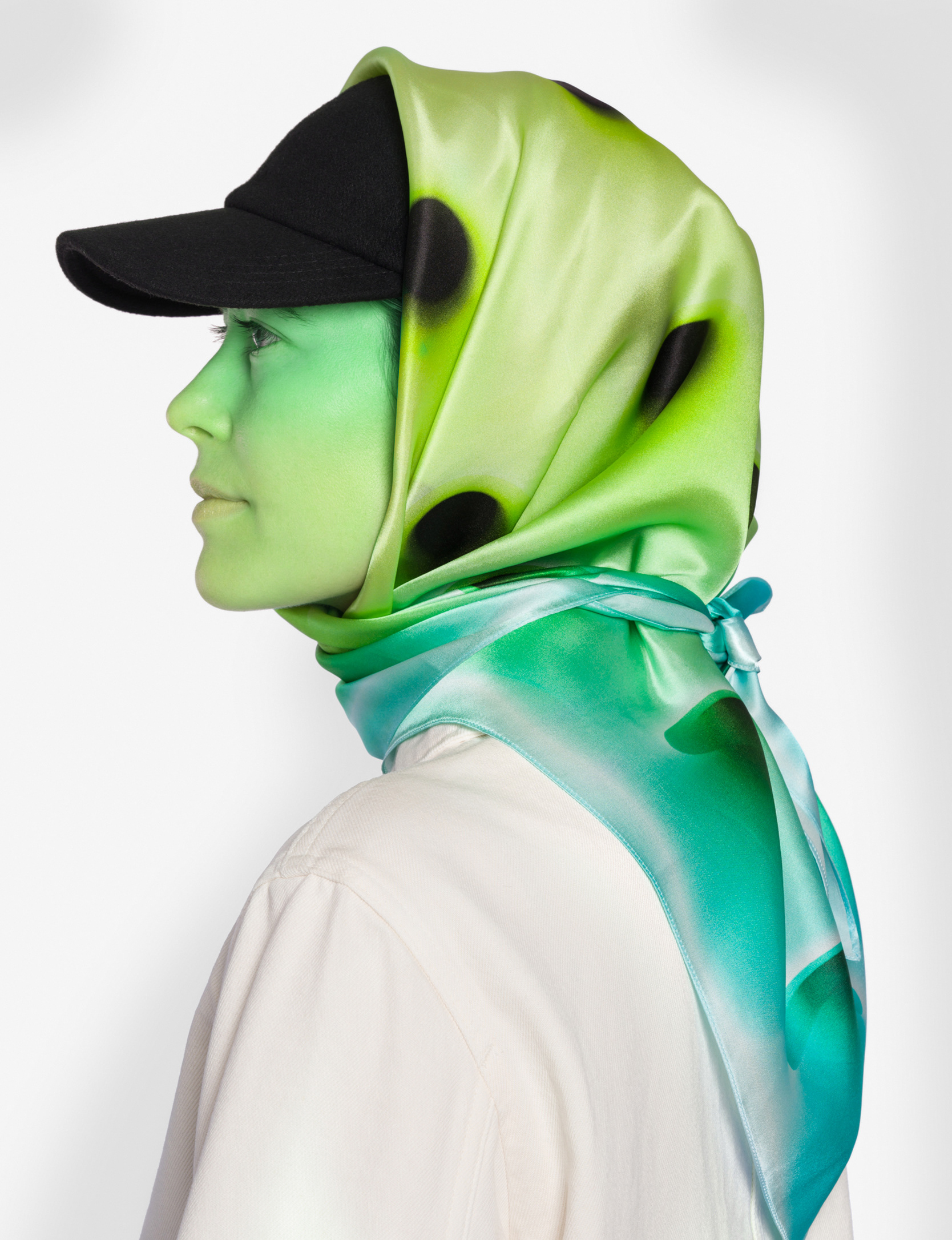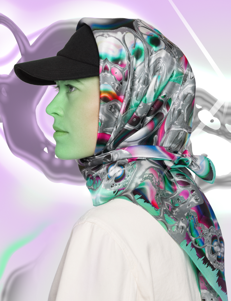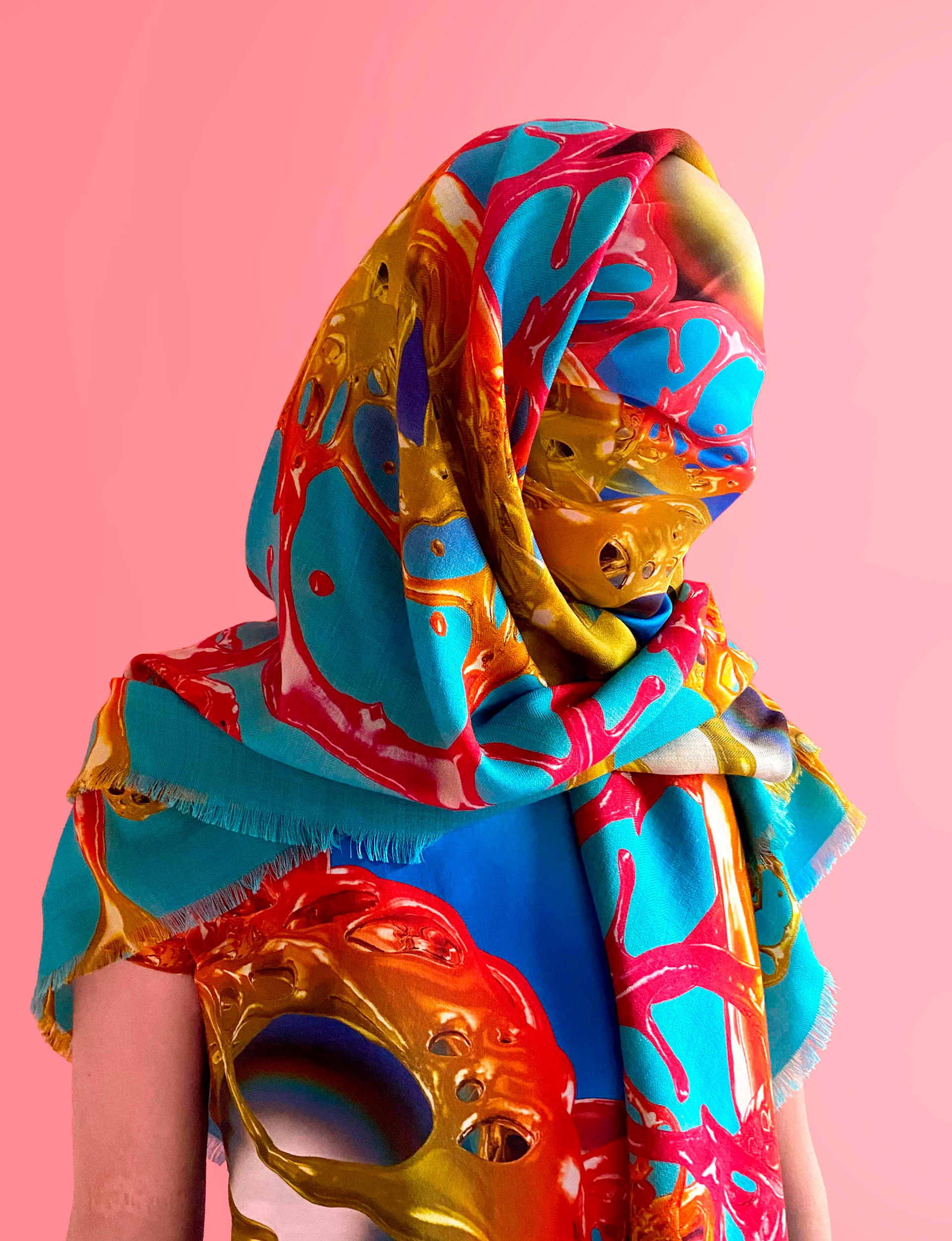 Scarves is currently represented at Henrik Vibskov Boutique and online https://henrikvibskovboutique.com / Digital print 100% Silk Manufactured in EU