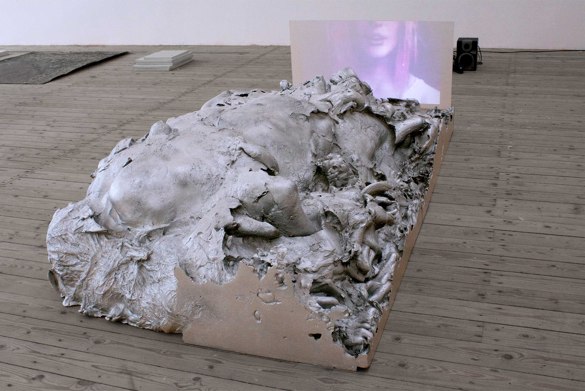 Exhibited at Malmö Kunsthal SE / Video projection on plexiglass, Aluminium, Jesmonite, Sound.